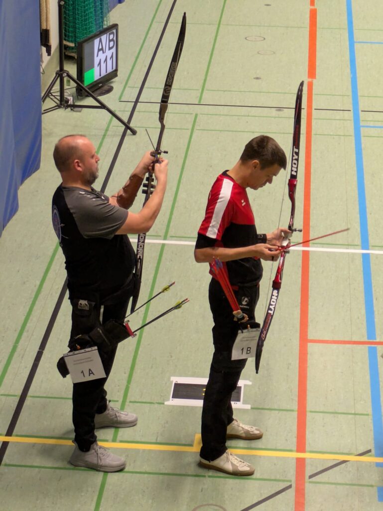 Schon bei der Ankunft in der Halle in Weißenhorn war die typische Wettkampfatmosphäre zu spüren. Als ich eintraf, war der Durchgang der Recurve- und Compound-Schützen noch in vollem Gange. Es ist immer wieder beeindruckend, den Kollegen mit Visier zuzuschauen. Doch für mich hieß es bald darauf: Konzentration auf das Wesentliche – ohne Visier, pur und direkt. Ich startete mit dem Blankbogen in der Herrenklasse.